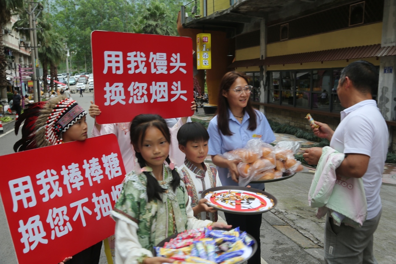 不少游客被孩子们的纯真和热情打动,纷纷主动灭掉香烟,接过志愿者递来的棒棒糖或馒头,并对活动竖起大拇指称赞:“这个活动太有意义了,不仅能让孩子们从小树立环保和健康意识,也让我们这些大人受到了教育。”还有游客表示:“在这特殊的节日里,看到这么温馨的一幕,感觉这个景区更有人情味了。”