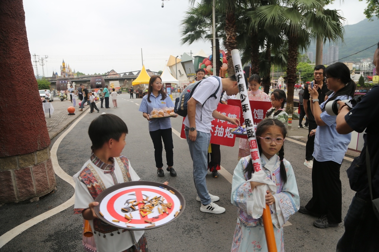 5月31日,世界无烟日与端午节、儿童节“双节”相遇,重庆涪陵美心红酒小镇景区内迎来了一群特殊的“小天使”。由当地儿童志愿者小分队和景区工作人员组成的“劝灭烟”队伍,用他们的热情与爱心,为景区带来了一股清新的文明之风。